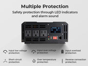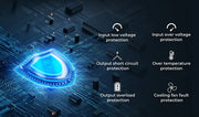 7 multiple protection function: Input low voltage protection, Input over voltage protection, Input overload protection, Short-circuit protection, Over temperature protection, Reverse connection protection. Always monitor and protect circuit safety through LED indicator and alarm sound.